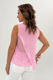 Розовый топ - всегда необходимая вещь. Эта модель без рукавов с асимметричным двухслойным низом, украшенным жемчужинами, с дополнительным запахом сзади, выгодным образом выделит Вас в любой компании.