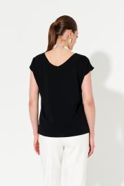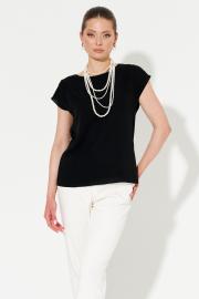 Блузка прямого силуэта выполнена из струящейся ткани. Характеристики: Прямой силуэт, горловина круглая, рукав короткий цельнокроеный. Длина изделия классическая. Блуза на вискозной подкладке.