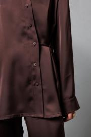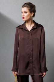Атласная блузка - трансформер. Блузка свободного кроя. Можно сделать ее более приталенной, застегнув потайной ремешок, или завязать внутренние ленты и спустить рубашку на плечи, для более расслабленного образа. Длина блузки - 73 см.