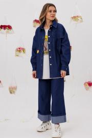 Рубашка свободного кроя, где по переду расположен декор в виде "золотого сердца". Стильная и трендовая джинсовая рубашка прекрасно разбавит ваш гардебор. Ее можно носить и летом набросив на футболку, и в холодное время года набросив на гольф или свитшот.