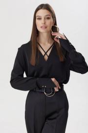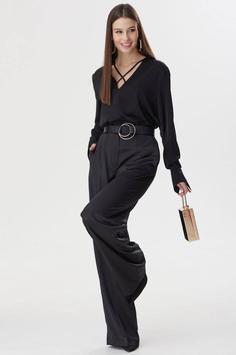 Нарядная блузка прямого силуэта из струящейся ткани. Горловина V-образная с декоративным элементом. Рукав втачной, по низу манжета с застежкой на петлю и пуговицу. Обращаем ваше внимание, что фурнитура может незначительно отличаться от фото. Длина изделия: (44-48р - 63см)(50-54р – 65см)(56-60р – 67см) Длина рукава: 61 см