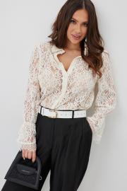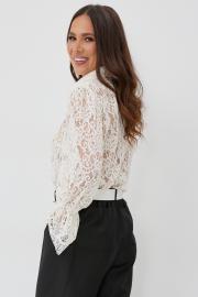 Невероятно нежная и стильная блуза прямого кроя с нагрудными вытачками. Рукав втачной, по низу присборен на эластичную тесьму и дополнен притачной кружевной манжетой. Застежка центральная на пришивные пуговицы. Воротник отложной на стойке. Блуза выполнена из красивого нежного бархатного кружева премиум качества. Длина блузы от плечевого шва 67см. Длина рукава 69 см.