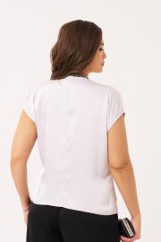Блузка женская из атласной ткани для повседневной носки. Блузка полуприлегающего силуэта. Блузка отрезная по линии талии. Верхняя часть блузки на запах с небольшими складками, а также имеется рельеф, идущий от линии плеча до отрезной линии по талии. Нижняя часть блузки имеет декоративную деталь, а также имитацию баски. Спинка со средним швом. Горловина V-образная. Рукава спущенные. Стильная блузка белого оттенка будет создавать впечатление утонченности и элегантности, а за счет качественного материала платье будет очень комфортным к телу, а также красивый блеск придаст шарма. В данной блузке вы будете смотреться очень очаровательно ведь она отлично подчеркнет все ваши достоинства и скроет имеющиеся недостатки.