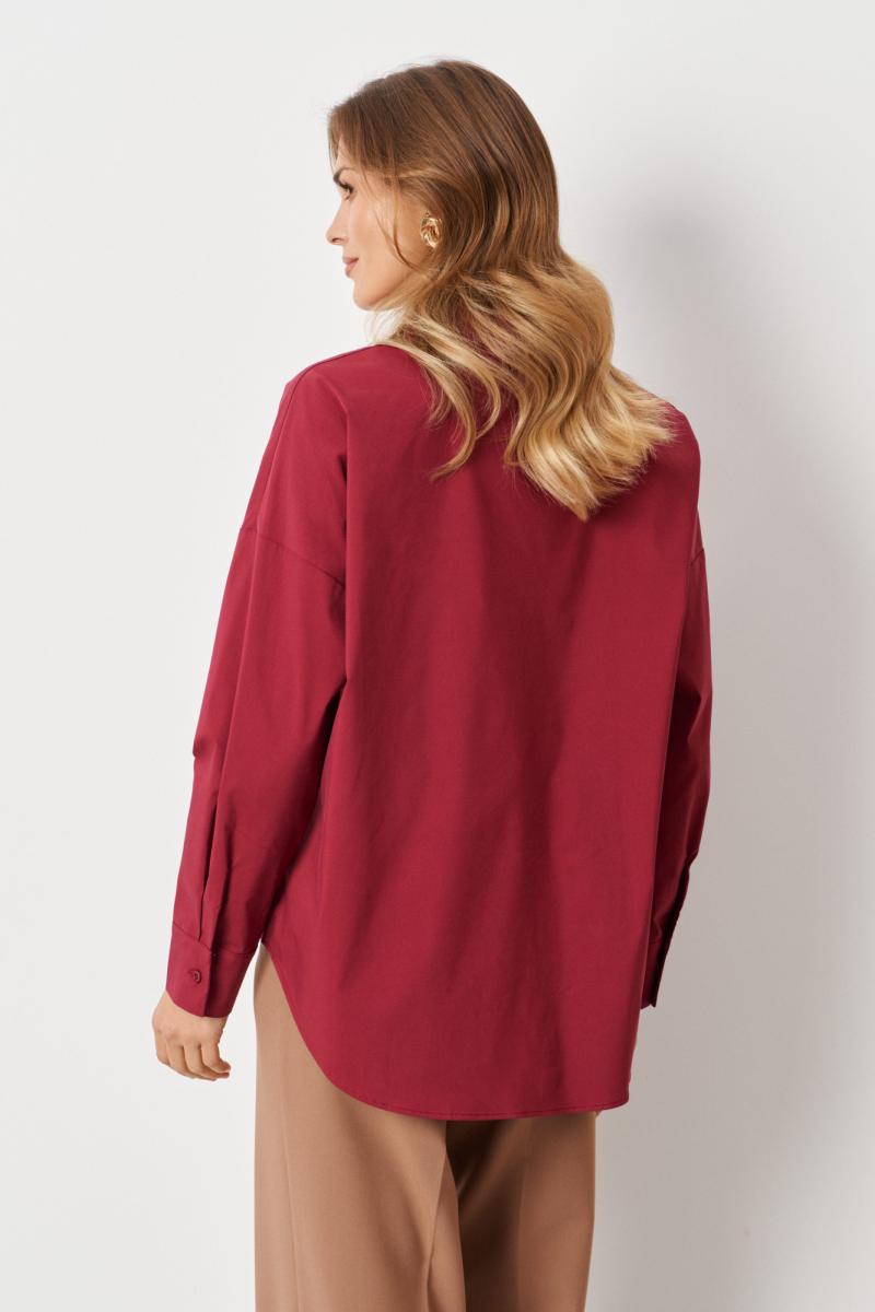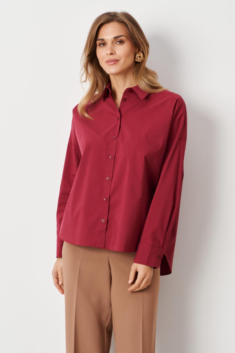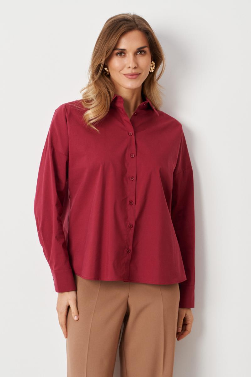 Однотонная рубашка-блузка с рукавами длиной 3/4 на манжетах представлена в нескольких расцветках. Блузка бордового цвета сочетается с различными вещами. Она разнообразит ваш повседневный гардероб, деловые и праздничные образы. Блузка на пуговицах женская универсальна, ее можно носить и зимой, и летом. Оверсайз блузка подойдет для работы и отдыха.