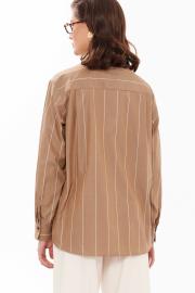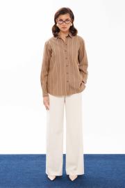 Блузка женская из хлопчатобумажной ткани для повседневной носки прямого силуэта. Застежка в блузке центральная бортовая на обметанные петли и пуговицы. Спинка имеет отрезную кокетку. Горловина обработана рубашечным воротником с отрезной стойкой. Рукава втачные длинные, низ рукава обработан притачной манжетой с застежкой на одну обметанную петлю и одну пуговицу. Стальная блузка, которая обязательно осчастливит вас своим чудесным видом, а главная данная блузка будет очень практичная и удобная.