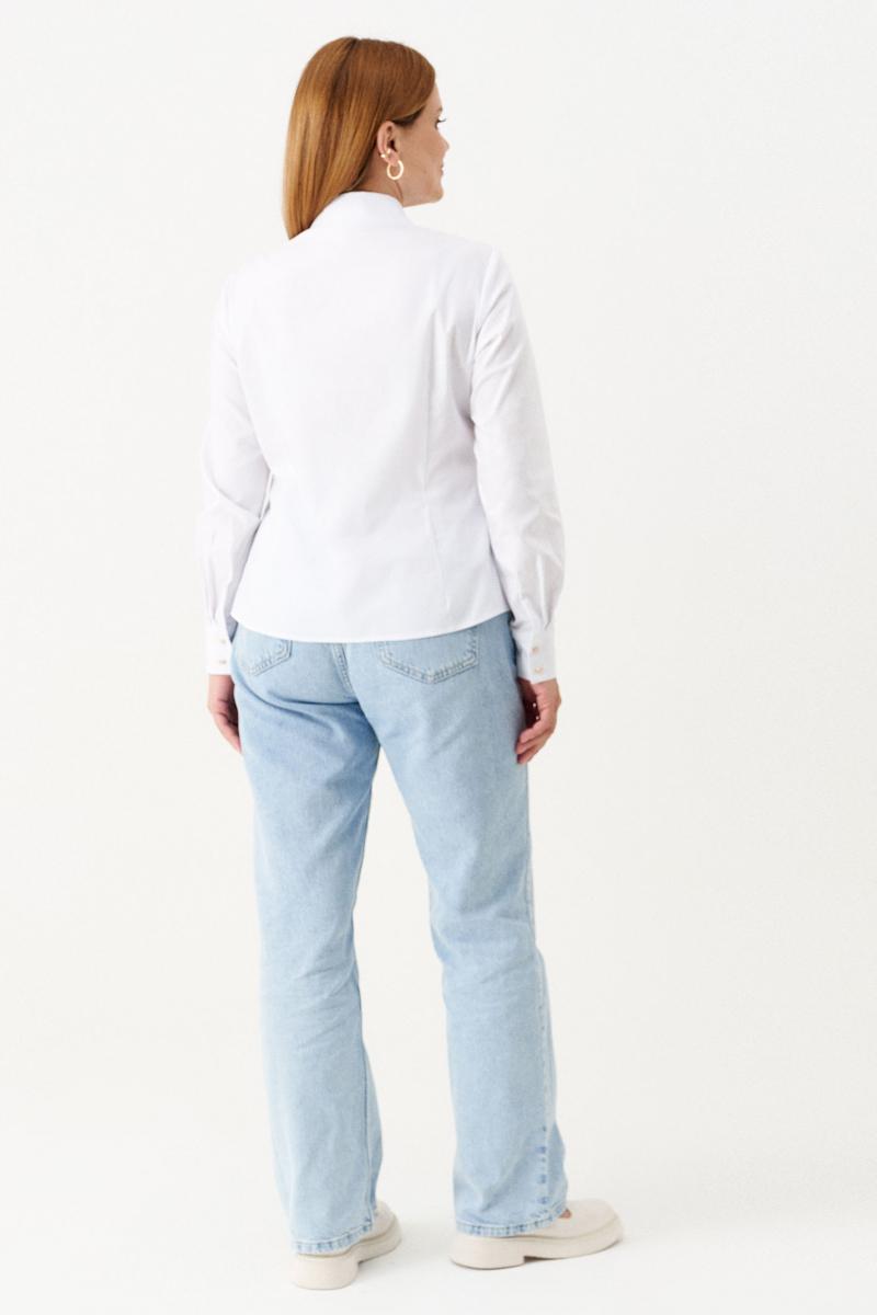 Блузка женская из смесовой ткани для повседневной носки. Блузка прямого силуэта, супатная застежка. Горловина обработана рубашечным воротником с отрезной стойкой. Низ рукава обработаны притачной манжетой, застежка на две обметанную петлю и две пуговицы. Стильная и очень удобная блузка станет вашим фаворитом на любой выход.