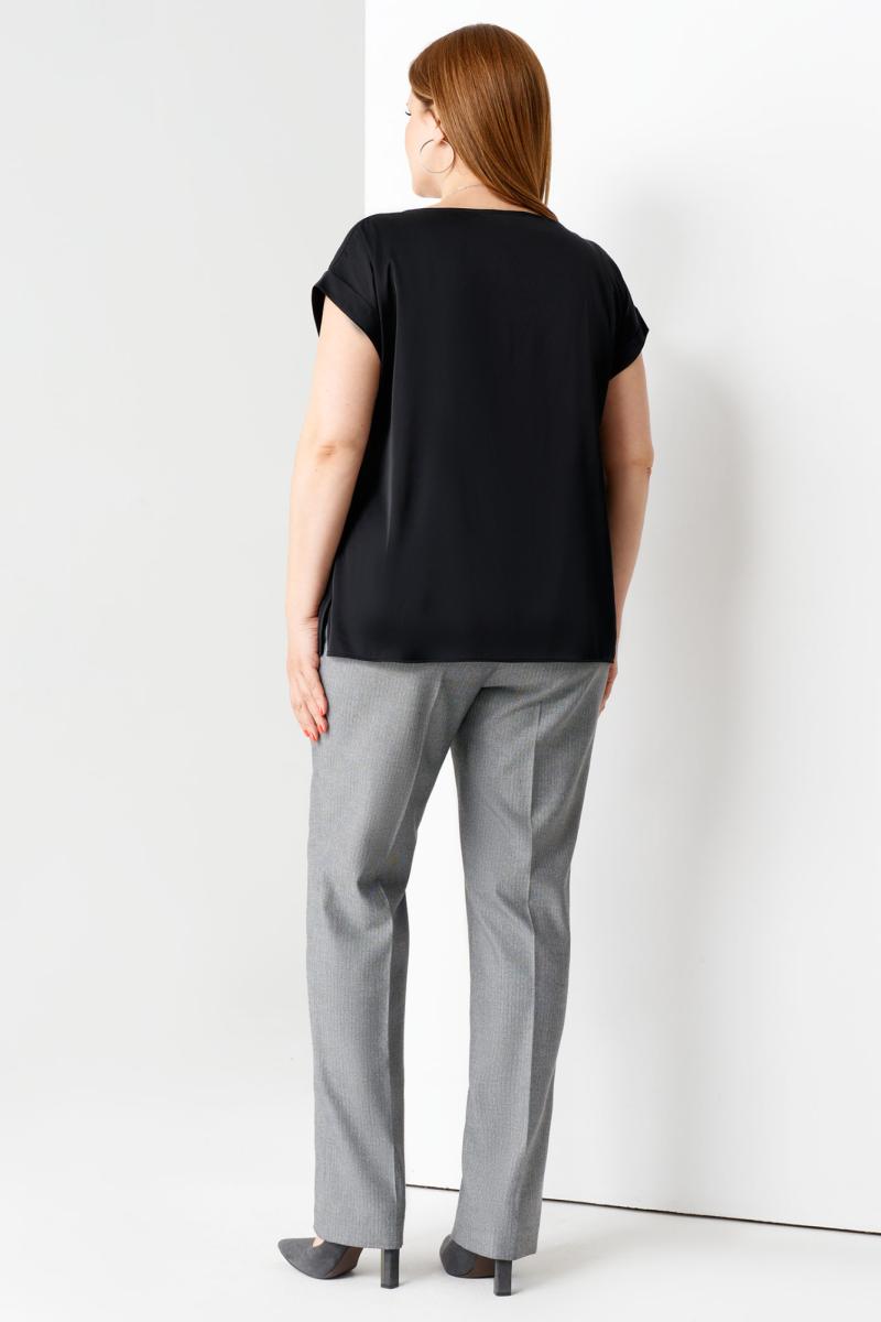 Лаконичная базовая блузка из тонкой струящейся ткани с небольшим блеском. Блузка полуприлегающего силуэта с круглым вырезом горловины, с нагрудными вытачками. Горловина обработана внутренней окантовкой. Проймы блузки обработаны декоративными отложными манжетами. Такая универсальная базовая блузка станет неотъемлемым дополнением вашего гардероба.