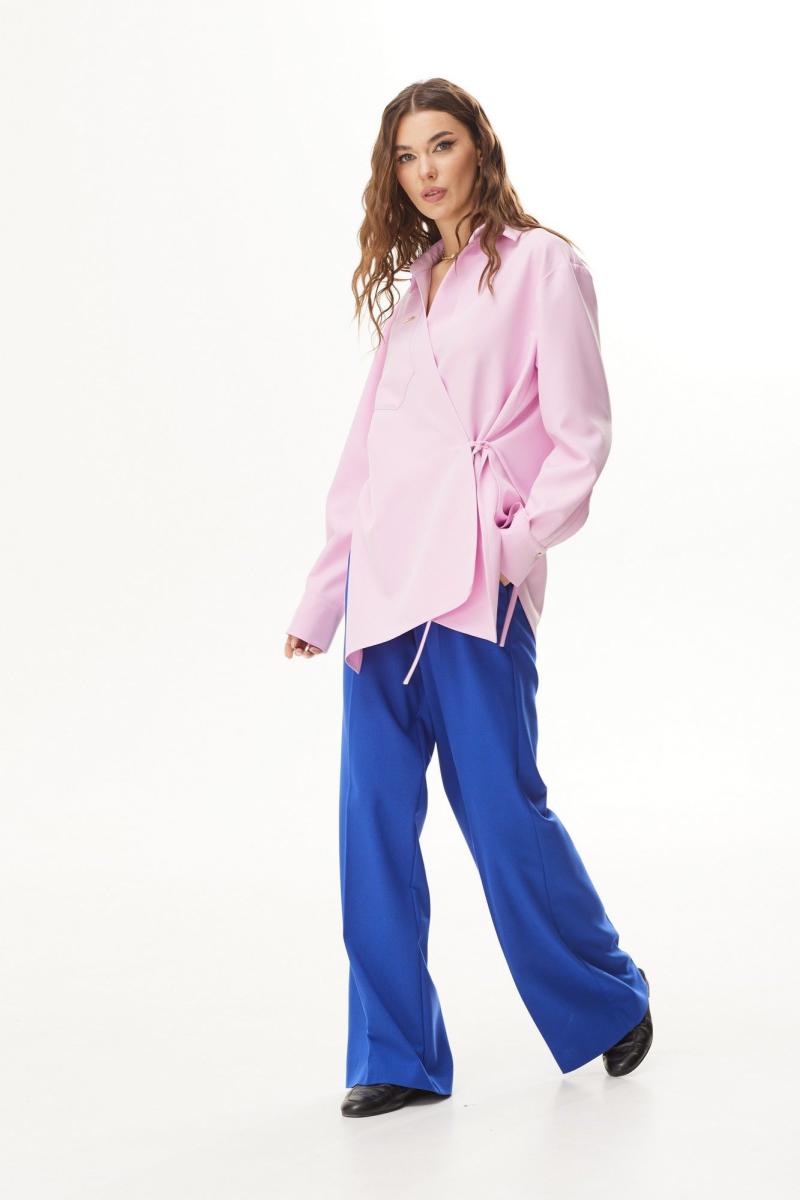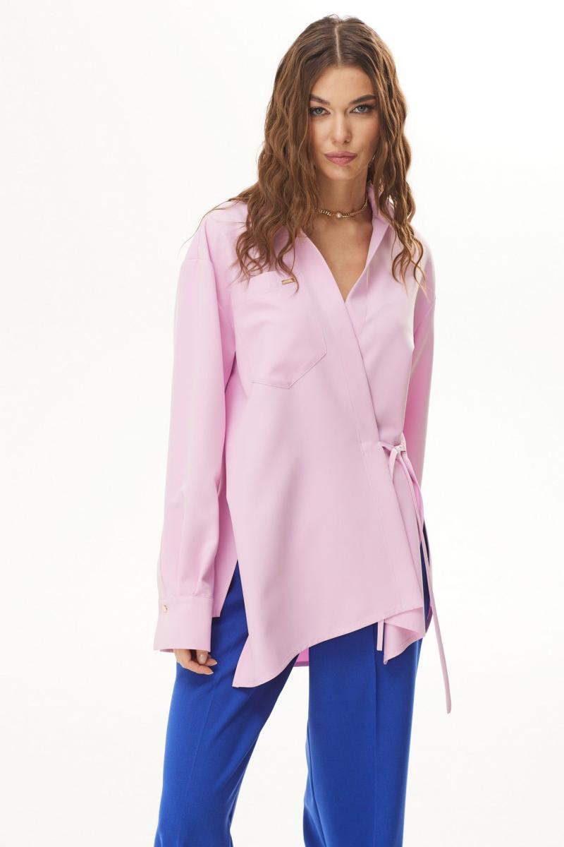 Блузка прямого силуэта. Застёжка на запах с завязками. Воротник рубашечный. На переде карман. В боковых швах разрезы. Рукав рубашечный на манжете на петлю и пуговицу. 44 р-р: ОГ - 110 см., ОТ - 110 см., ОБ - 116 см. 46 р-р: ОГ - 114 см., ОТ - 114 см., ОБ - 120 см. 48 р-р: ОГ - 118 см., ОТ - 118 см., ОБ - 124 см. 50 р-р: ОГ - 122 см., ОТ - 122 см., ОБ - 128 см. 52 р-р: ОГ - 126 см., ОТ - 126 см., ОБ - 132 см.