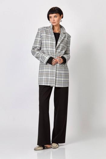 Блузка прямого силуэта из ткани «органза». Застежка по горловине спинки па пуговицу. Воротник-стойка переходящая в завязку-бант. По верху стойки оборка. Рукав свободный со сборкой по верху и низу.