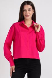 Рубашка женская, прямого силуэта со спущенным плечом. Перед из двух частей с центральной бортовой застежкой на 5 петель, пуговиц и двумя карманами. Спинка цельная.  Рукав с притачной манжетой, застегивающейся на 2 петли и пуговицы. Воротник рубашечного типа на стойке. Длина изделия (р.44, 46, 48): 51,5 см.  Длина изделия (р.50, 52, 54): 54 см.  Длина рукава: 62 см. Уход: ручная стирка при температуре не выше 30 С.