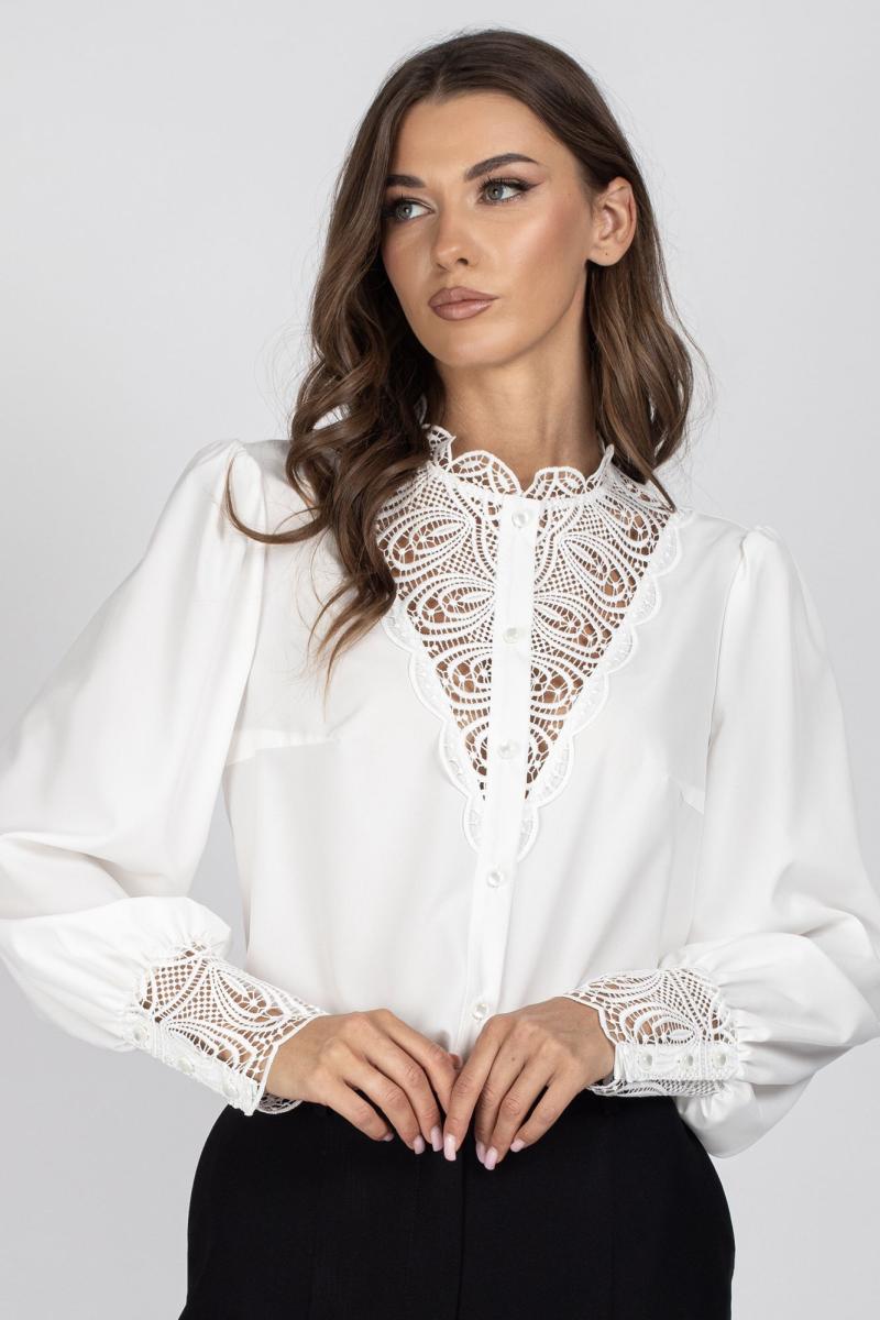 Перед с нагрудными вытачками и центральной бортовой застежкой, выполненной из кружева.