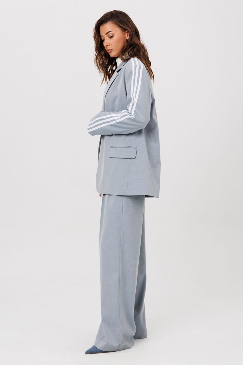 Брюки-палаццо на притачном поясе и застежкой-гульфик. Пояс застегивается на петлю-пуговицу. По переду со складками и карманами в боковых швах с наклонным входом. По спинке пояс на резинке.