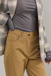 Брюки хлопковые свободного силуэта . Выполнены из качественного хлопка средней плотности , который прекрасно держит форму. Верх брюк обаботан притачным поясом , застежка в виде молнии , по переду брюк функциональные боковые карманы . Сзади - кокетка и фигурные накладные карманы в верхней части .