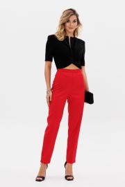 Брюки выполнены из однотонной костюмной ткани, заужены к низу, на задних половинках карманы с листочкой, застежка в боковом шве на металлическую молнию и пуговицу. По низу в боковом шве разрез. Длина брюк: р. 44-54 с поясом - 100 см, без пояса - 98 см. 44 46 48 50 52 54 Длина по боковому шву 100 100 100 101,5 101,5 101,5 Объем по талии 72 76 80 84 88 92 Объем по бедрам 94 98 102 106 110 114 Объем по голени 38 40 42 44 46 48 Ширина пояса 3 3 3 3 3 30