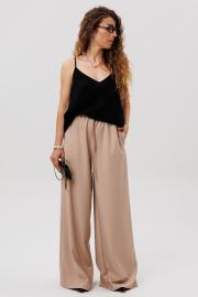 Брюки свободного кроя с боковыми карманами на резинке - универсальная и незаменимая вещь в гардеробе. Хлопок и вискоза в составе обеспечивают комфорт и хорошую воздухопроницаемость, ткань превосходно зарегомендовала себя в носке. Олично сочетаются с топом, блузкой, лонгом. Длина изделия 112 см