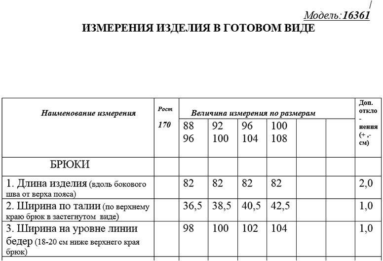 Таблица размеров