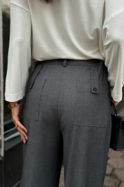 Брюки женские прямого силуэта. По переду обработана застежка на молнию и складки. По задним половинкам брюк застрочены вытачки, настрочены накладные карманы с патой, выходящей из пояса, застегивающейся на кнопку. В боковых швах обработаны боковые карманы. Пояс притачной, по переду с застежкой на потайную пуговицу и декоративную клеванту, по задней части на резинке. Декоративные элементы и фурнитура могут отличаться от заявленных на фото. Цвет материала может отличаться по тону в зависимости от настроек вашего монитора! Длина изделия по боковому шву 109,5 см. Ширина по линии бедер: 44р. - 104 см, 46р. - 108 см, 48р. - 112см, 50р. - 116 см, 52р. - 120 см, 54р. - 124см.