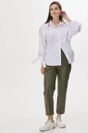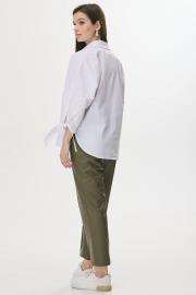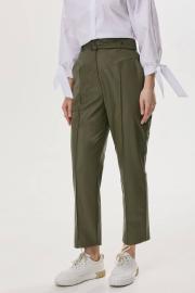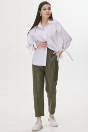Классические брюки зауженные книзу из экокожи. По верху брюк притачной пояс и шлевки для ремня. Перед и спинка с отрезной кокеткой. На передних половинках брюк наклонные карманы и защипы, на задних – вытачки и накладные карманы. В среднем шве застежка на молнию и пуговицу. В брюки на поясе по спинке вставлена эластичная тесьма (резинка). В комплект входит съемный пояс. Обращаем ваше внимание, что фурнитура может незначительно отличаться от фото. Длина изделия: 99 см + 4.5 см пояс
