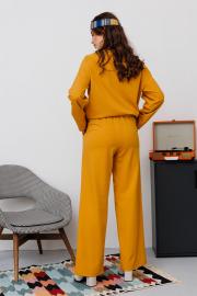 Брюки со стрелкой свободного кроя, верхний срез представлен широкой резинкой, с карманами.
