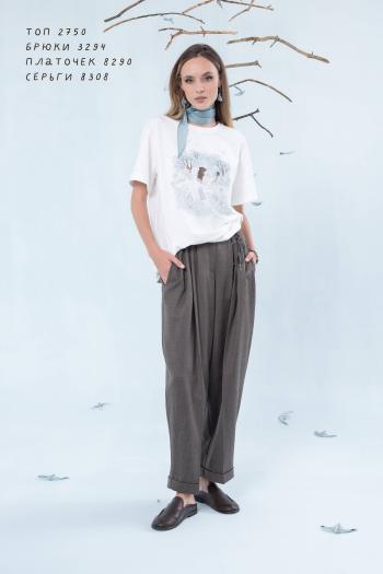 Брюки свободного кроя, верхний срез представлен широкой резинкой, с карманами.