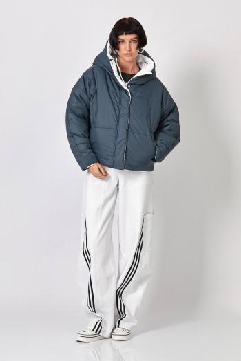 Брюки средней посадки на резинке, слегка зауженные к низу с наклонными боковыми карманами. Низ брючины ассиметричный по переду