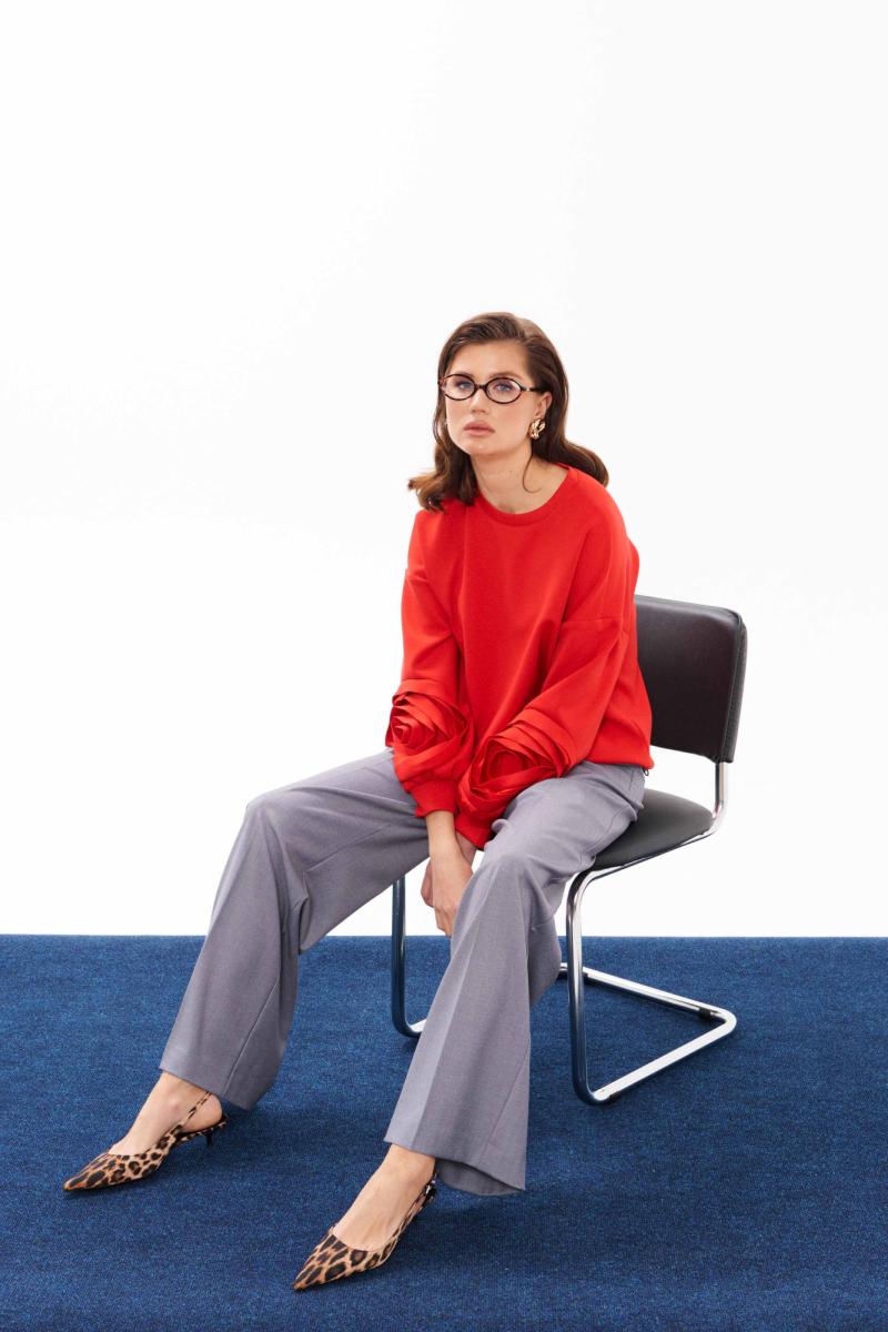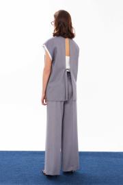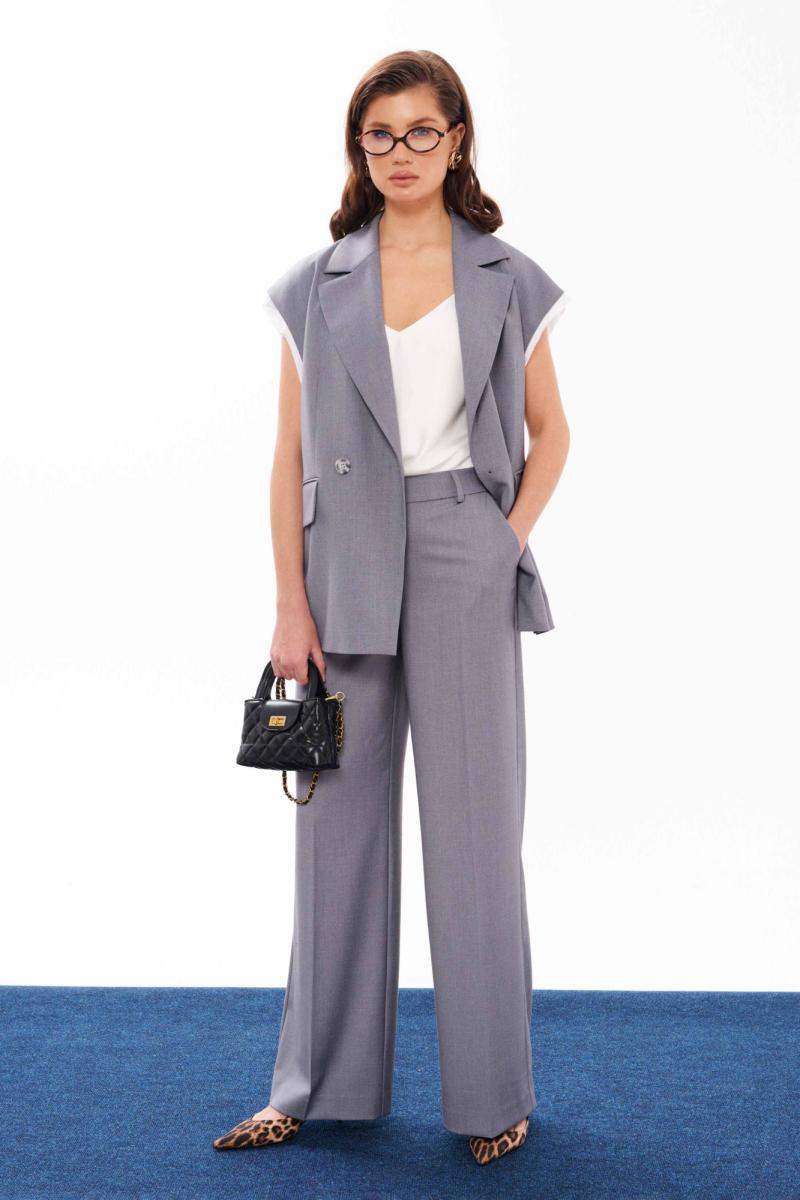 Брюки женские прямые из смесовой ткани для повседневной носки. Верхний срез брюк обработан притачным поясом, застежка на один крючок, а также имеется застежка на тесьму-молнию в среднем шве брюк. В брюках имеются шлевки, что дает возможность носить их под ремень. Задняя часть брюк имеет четыре талиевых вытачек. В брюках расположен в боковом шве карман с подкройным бочком. Брюки элегантного серого оттенка, которые будут гармонично смотреться под любые изделия. В данных брюках вы будете выглядеть очень стильно, а главное вы всегда будете в центре всеобщего восхищения.