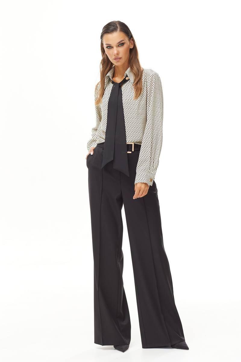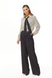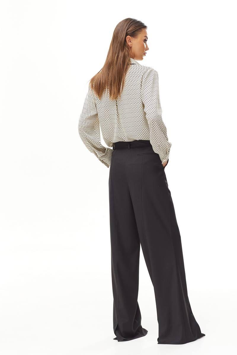 Брюки прямые, широкие. Верх на притачном поясе. На поясе дополнительная застежка на декоративную пряжку. На передних и задних частях брюк застрочен кант. Застежка по переду на молнию. В боковых швах карманы. 44 р-р: ОТ - 75 см., ОБ - 98 см. 46 р-р: ОТ - 79 см., ОБ - 102 см. 48 р-р: ОТ - 83 см., ОБ - 106 см. 50 р-р: ОТ - 87 см., ОБ - 110 см. 52 р-р: ОТ - 91 см., ОБ - 114 см.