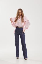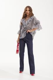Брюки из джинсовой ткани. Верх на притачном поясе со шлевками. Застежка по переду на молнию и пуговицу на поясе. На задних частях брюк карманы. В комплекте съемный ремень.