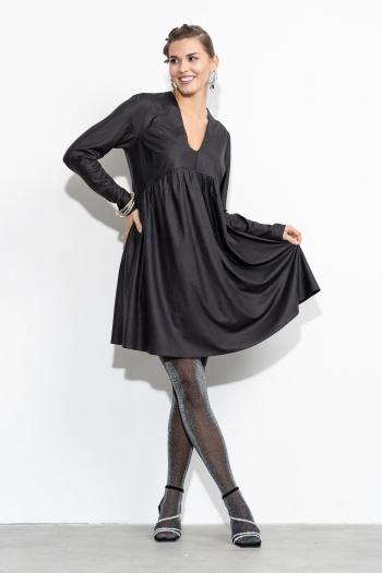 Джемпер прямого кроя выполнен из трикотажного полотна оранжевого цвета. Характеристики: прямой свободный крой, V образный вырез горловины, отложной воротник, рукав втачной с разведением к низу, низ рукава и низ изделия не обработаны. Длина по спинке 71, длина рукава 65 см.