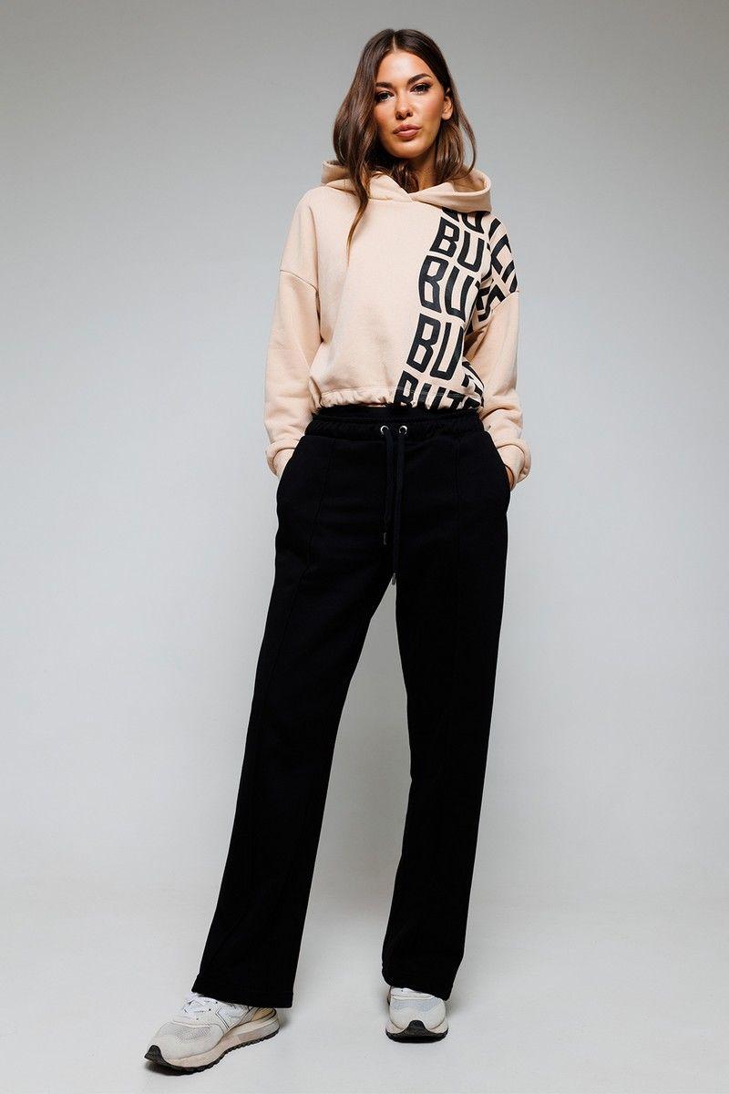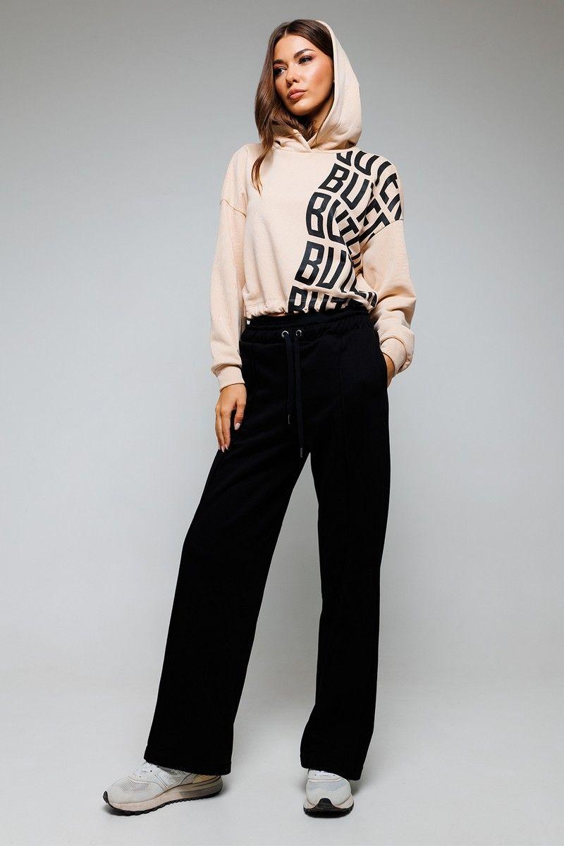 Джемпер укороченный, с капюшоном, на резинке по низу изделия, прямого силуэта. С втачным рукавом, внизу на манжете. Джемпер с печатью "BUTER" на полочке.