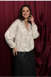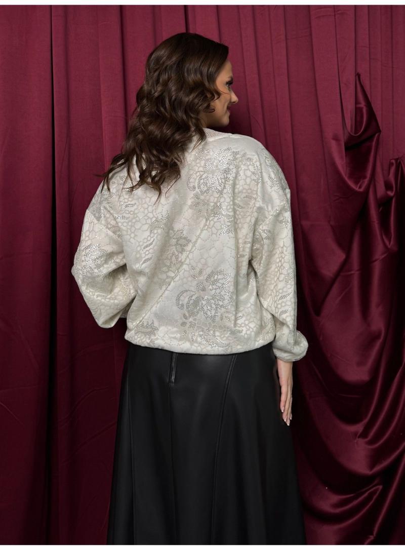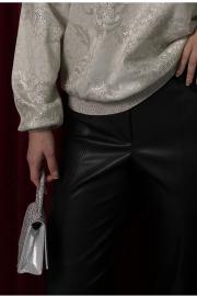 Этот джемпер — гармоничное сочетание элегантности и современного шика. Прямой силуэт и длина до линии бедра делают его универсальным и комфортным. Удлиненная линия плеча придает образу легкую небрежность и стильность. Одношовный длинный рукав создает чистую линию и аккуратность, а V-образная горловина добавляет изящества и привлекательности. Низ изделия, рукава и горловина обработаны трикотажным довязом, что подчеркивает качество и внимание к деталям. Особенность этого джемпера — двойной слой: верхний из сетки с мерцающими пайетками, придающей образу праздничное настроение, и нижний — из роскошного сатина Армани, создающего эффект богатства и изысканности. Этот джемпер — идеальный выбор для тех, кто ценит стиль, комфорт и хочет выглядеть ярко и элегантно в любой ситуации.