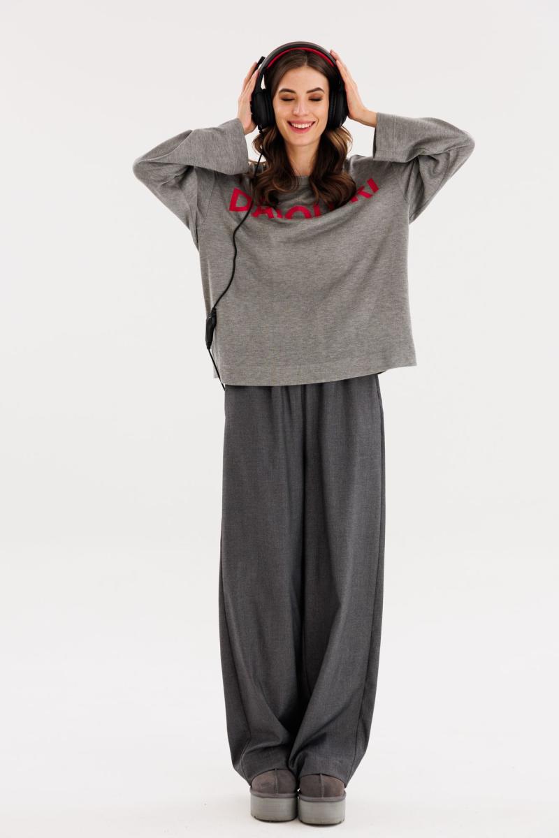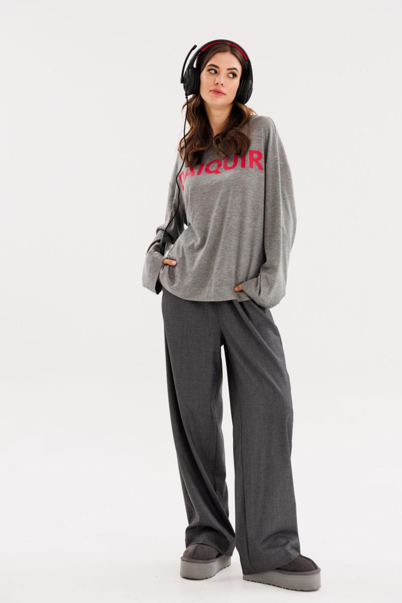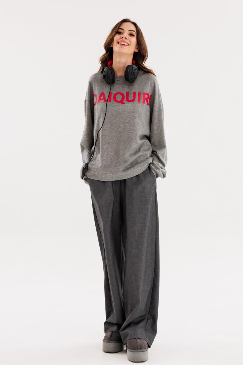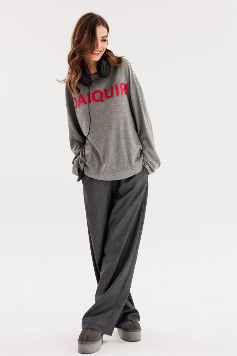 Джемпер выполнен из трикотажого полотна. Джемпер прямого силуэта, длиной выше линии бедер. Перед и спинка цельные. Горловина округлой формы, обработана бейкой из основной ткани. Плечевой шов удлинен. Рукав рубашечного покроя, одношовный. Джемпер декорирован печатью спереди. Длина джемпера: р. 44-48 - 63 см, р. 50-54 - 64,5 см. Длина рукава: р. 44-48 - 75 см, р. 50-54 - 76 см. Гарантийный срок не установлен ГОСТ 31409-2009