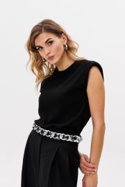 Джемпер выполнен из трикотажного полотна в рубчик. Джемпер прямого силуэта, длиной выше линии бедер. Перед и спинка цельные. Горловина округлой формы, обработана бейкой. Плечевой шов удлинен. Джемпер с плечевой накладкой. Длина джемпера: р. 42-46 - 57 см, р. 48-52 - 59 см. 42 44 46 48 50 52 Длина по центру спинки 57 57 57 59 59 59 Длина рукава от горловины Объем по груди 92 96 100 104 108 112 Объем по талии 92 96 100 104 108 112 Объем по низу 96 100 104 108 112 116