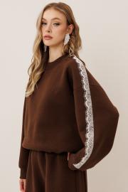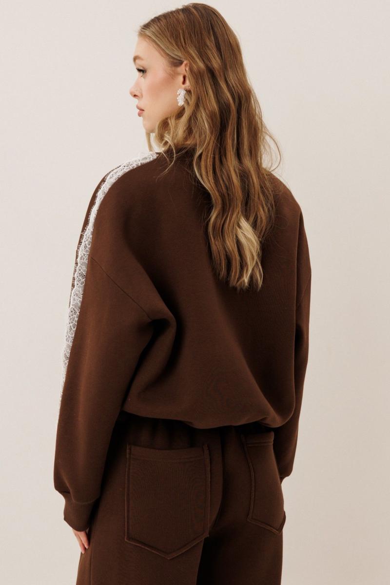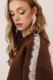 Найден рецепт хорошего настроения! Главные ингредиенты - супер комфортный свитшот от GO! Свитшот: два размера 42-44 и 46-48 горловина и манжеты из кашкорсе вышивка в цвет с левой стороны переда контрастный кружево от горловины до манжеты низ на регулируемой резинке Длина свитшота по спинке: 52 см для роста 170-176 Длина рукава от горловины: 71-73 см Полуобхват груди свитшота: 42-44 р- 66 см, 46-48р - 100 см