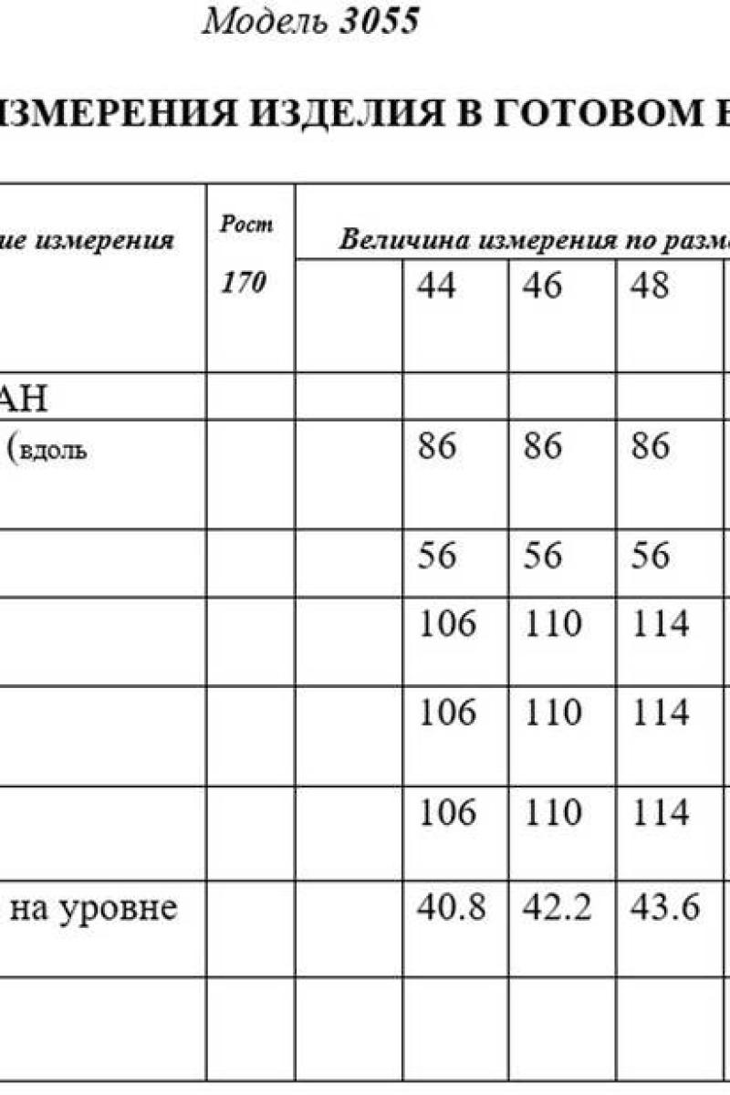 Таблица размеров