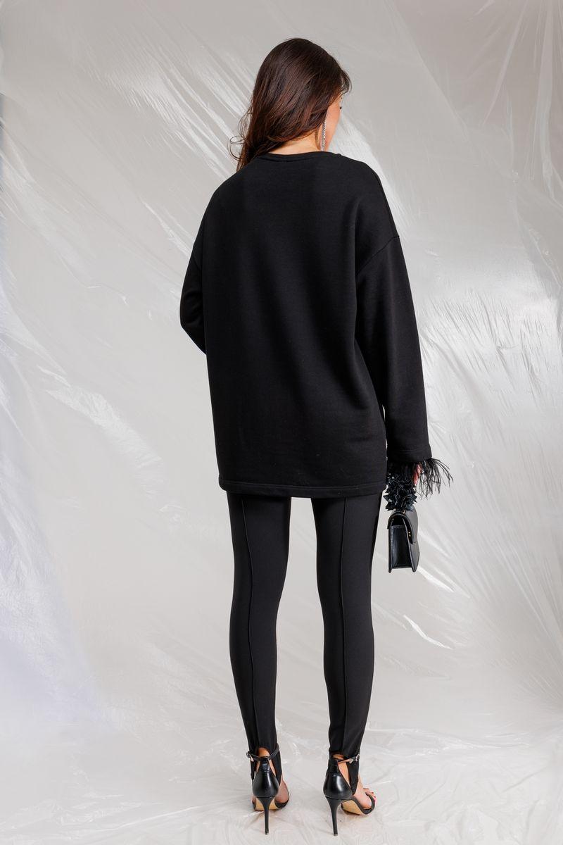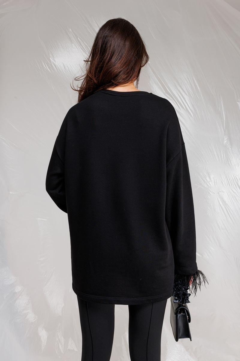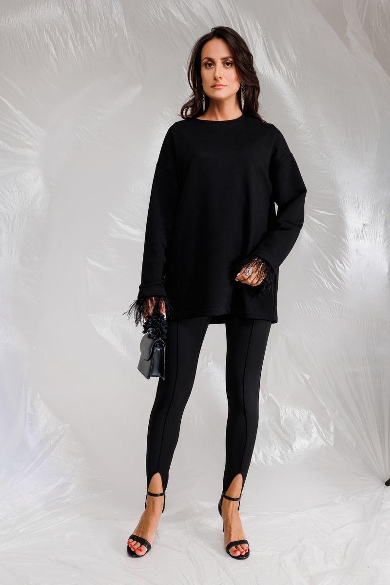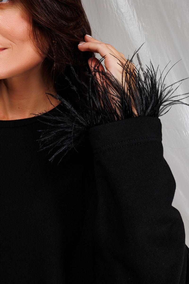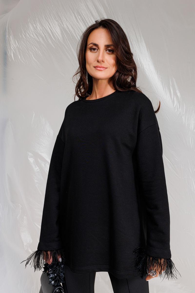 Стильный лонгслив с перьями на рукавах. Линия плеча спущенная. Перья сьемные, для удобства в стирке, и смены образа. Самая универсальная вещь для вашего гардероба, его можно надеть на вечеринку или свидание, а сняв перья носить в повседневной жизни.