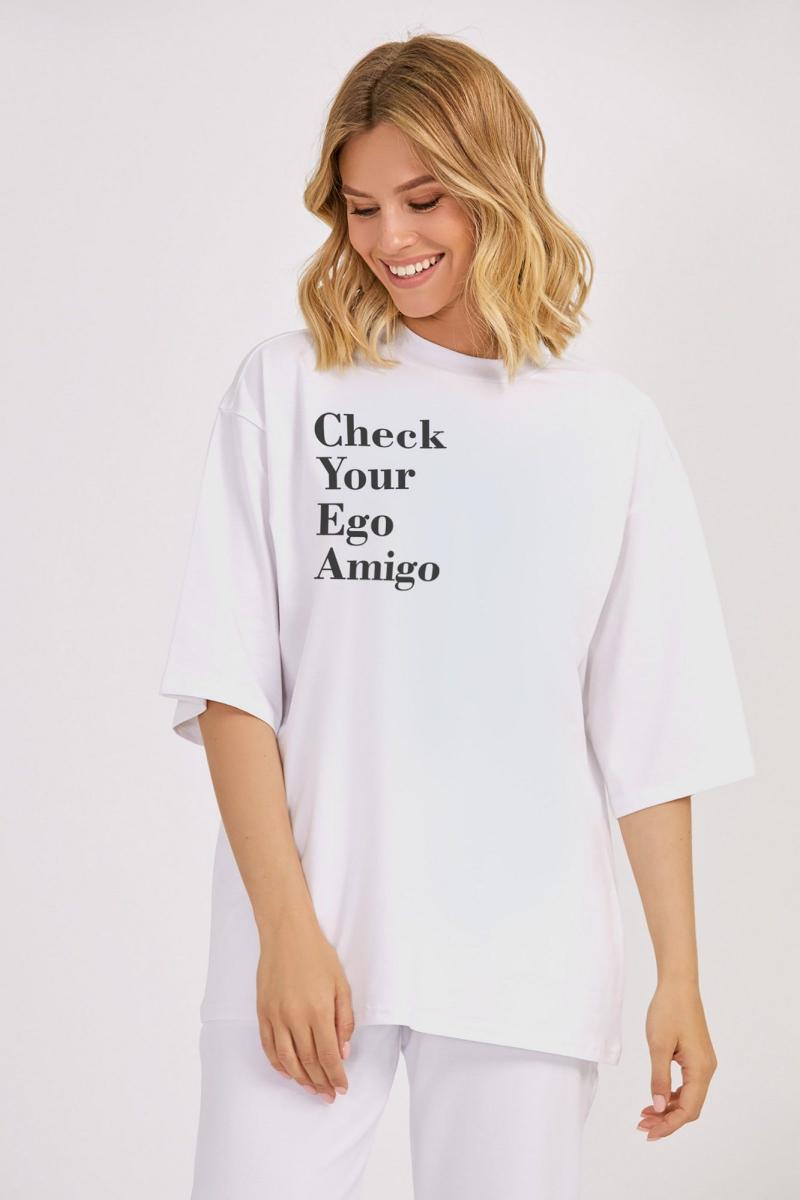 Джемпер: - свободный крой oversize - спущенная линия плеча - вырез горловины обработан кашкорсе - по переду печать