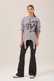 Джемпер прямого силуэта из трикотажного полотна. Горловина округлая. Рукав со спущенной линией плеча по низу на манжете. Низ изделия фигурный с декоративной фурнитурой . По переду дизайнерская вышивка. Длина джемпера ( 44-48р- 59см)(50-54р - 62см) Длина рукава от горловины (44-48р - 77см)(50-54см - 79см)
