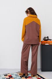 Джемпер из комбинированной ткани свободного силуэта. Рукав реглан. Воротник стойка.