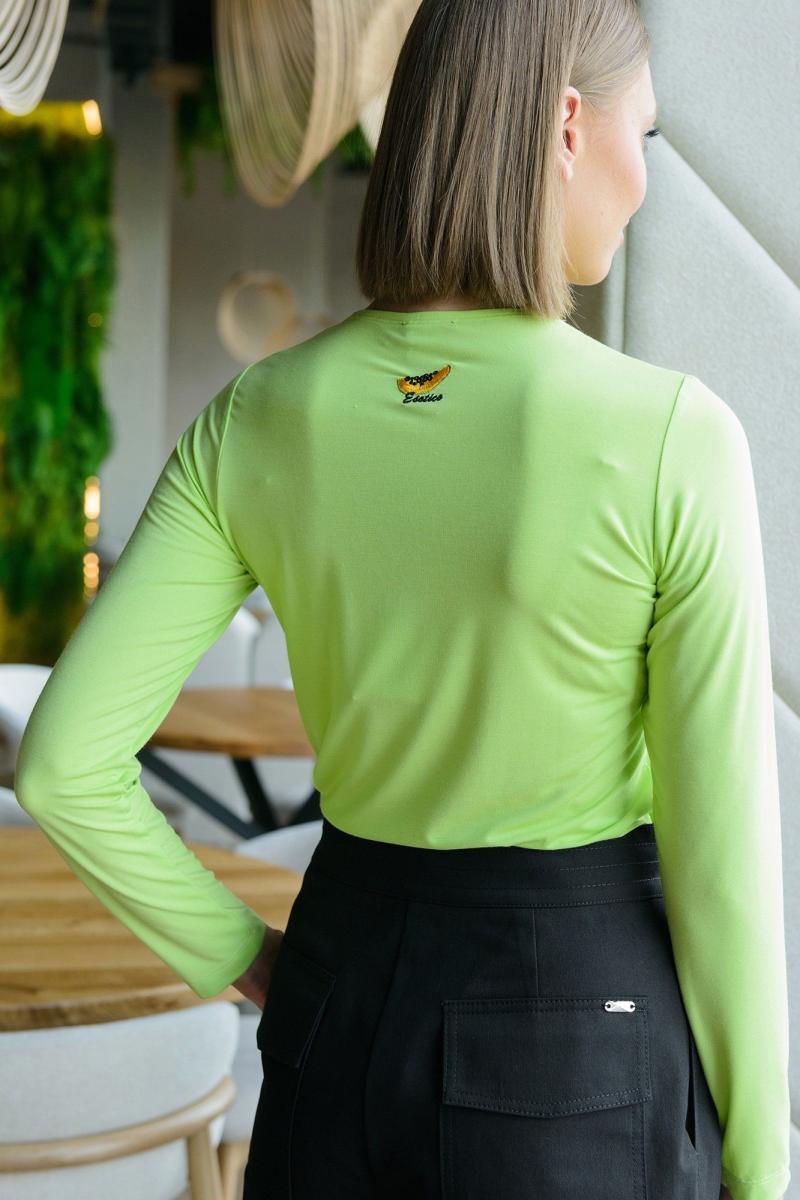 Трикотажный лонгстлив из яркого полотна, приятного к телу.