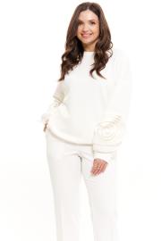 Джемпер женский из поливискозного трикотажного полотна для повседневной носки. Джемпер прямого силуэта. Низ изделия обработан притачным поясом. Горловина округлая. Линия плеча спущена. Рукава втачные, длинные, низ рукава обработан притачной манжетой, к низу рукава имеется дизайнерский декор в виде раскошных тканевых цветов . Очень стильный джемпер, который безусловно станет вашим фаворитом среди вашего гардероба. В нем вам безусловно будет комфортно, а главное вы будете выглядеть модно.