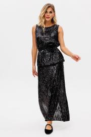 Топ выполнен из трикотажного полотна в пайетки. Топ прямого силуэта, длиной до линии бедер. Перед и спинка цельные. Горловина округлой формы. Плечевой шов укорочен. Топ на отлетной по низу подкладке. Длина топа: р. 42-46 - 61 см, р. 48-52 - 62,5 см.