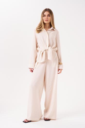 Комбинезон - один из самых востребованных предметов женского гардероба, создающий модные молодежные образы, удобен, практичен и является безусловным трендом этого сезона! Отличный вариант как под классическую лодочку, так и под пляжные сандалии. Комбинезон женский отрезной по линии талии, собран на резинку. Верх горловины собран на широкую тесьму резинку, что позволяет оголять плечи. Рукав на основе реглан. Нижняя часть изделия выполнена в виде брюк палаццо. В боковых швах предусмотрены удобные карманы. К изделию прилагается пояс из основной ткани.