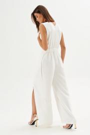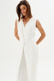 Комбинезон полуприлегающего силуэта: •отрезное по линии талии •лиф на запах с частично вставленной накидкой •спинка с V-образным вырезом и потайной застежкой •брюки с имитацией запаха по переду.