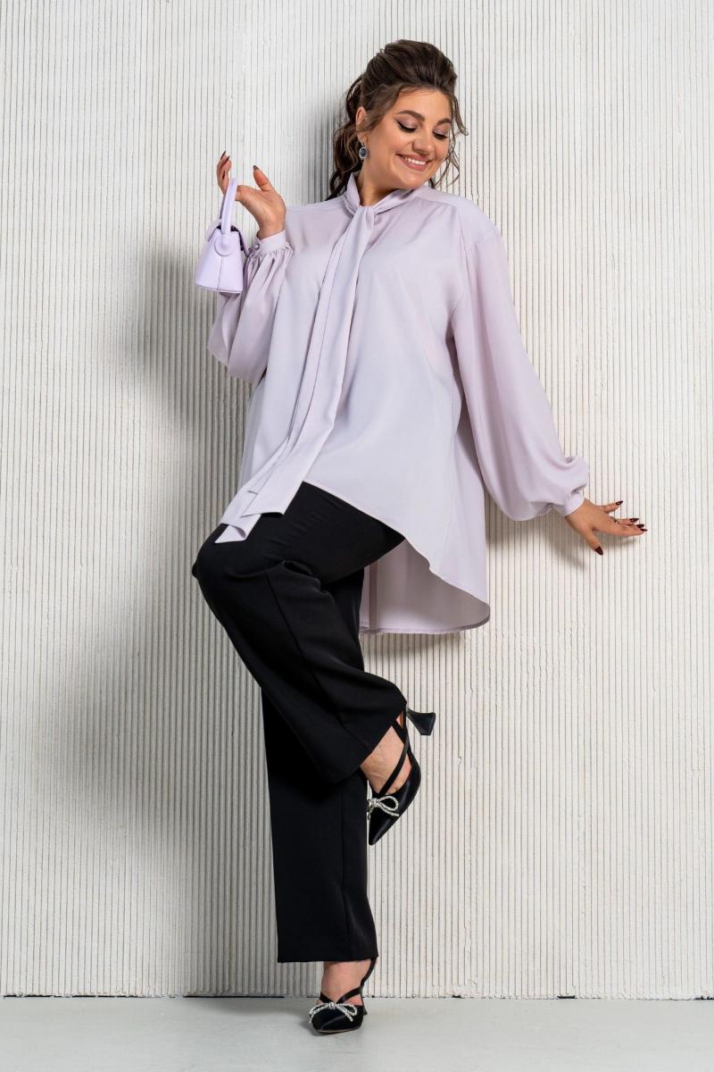 Универсальный комплект состоит из блузки и брюк. Блузка свободного силуэта с воротником аскот (воротник-бант) станет ультрамодным дополнением Вашего гардероба, а пышные рукава зачаровывают своей легкостью и воздушность силуэта. По переду центральная застежка на петли и пуговицы и спущенной линией плеча. Рукав втачной, одношовный с манжетой по низу. По спинке кокетка. Брюки прямого силуэта с заутюженными стрелками и притачным поясом. Для максимально комфортной посадки по бокам пояса вставлена эластичная резинка. Застёжка на молнию с гульфиком и пуговица по поясу. По переду в боковых швах карманы. Задние половинки брюк с талиевыми вытачками.