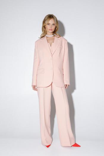 Брюки широкие, свободные, прямого силуэта с притачным поясом на резинке. С косыми боковыми карманами.