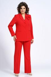 Жакет полуприлегающего силуэта, частично на подкладке (перед, спинка), с центральной застёжкой на петли, пуговицы. Декорированный съёмным украшением.