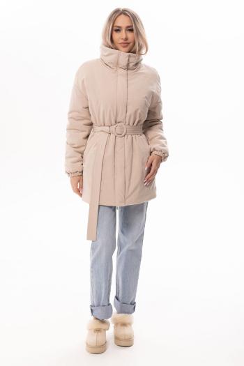 Блузка из вискозной ткани платьево-блузочного ассортимента, свободного кроя «оверсайз», длиной ниже середины бедра, со спущенной линией плеча, с рукавами, длиной до запястья. Горловина округлой формы, с отложным воротником. Рукава длиной до запястья, с двумя парами складок по шву притачивания манжет. Застёжка центральная на петли и пуговицы на цельнокроёной планке. На деталях переда, на уровне груди накладные, прямоугольные карманы с клапанами. На левой полочке внизу, ближе к боковому нанесена текстовая печать. Спинка со встречной складкой, частично застроченной от линии горловины до уровня лопаток. Манжеты рукавов с застёжкой на петлю и пуговицу. Низ переда и спинки прямой, спинка длиннее полочки, по боковым швам шлицы. Пояс съёмный из основной ткани с металлической пряжкой «полукольца». По краю воротника, манжетам, складке спинки, клапанам и карманам прострочена широкая отделочная строчка, низ блузки застрочен широкой отделочной строчкой, по поясу прострочены две параллельные строчки. Пуговицы, пряжка и печать – контрастного цвета.