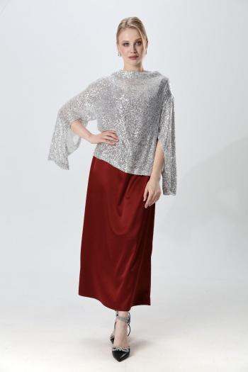 Костюм женский двухпредметный (блузка-топ+брюки) из костюмно-плательной ткани. Блузка укороченная, на регулируемых бретелях, резная, с отрезными резными чашками и контрастной дополнительной чашкой. Для лучшего прилегания в швах вставлены косточки - регилин. В среднем шве спинки разъемная застежка молния. Блузка на подкладке. Брюки прямые, широкие, длинные. Перед с двумя складками и застежкой на молнию. Задние половинки с талиевыми вытачками. В боковых швах функциональные карманы с подкройным бочком. Брюки на притачном поясе с шлевками и частично на резинке, застежкой на петлю, пуговицу.