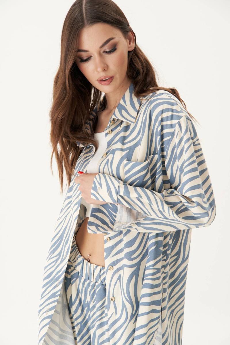 Свободная широкая рубашка и брюки-палаццо. Силуэт оверсайз, покрой рубашечный, воротник классический рубашечный с отрезной стойкой. Полоска, с отрезной кокеткой и накладным карманом. Спинка с отрезной кокеткой.